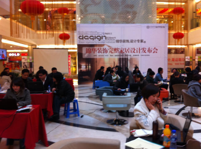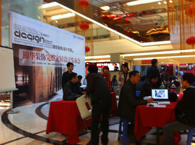 在一樓中央?yún)^(qū)域,近20位全國優(yōu)秀設(shè)計(jì)師接待業(yè)主的裝修咨詢;周邊液晶電視,不間斷的播放《堂杰支招》,增加業(yè)主對(duì)裝修的認(rèn)識(shí)。兩天的時(shí)間,來訪客戶絡(luò)繹不絕。一方面,眾多的城西區(qū)域業(yè)主在錦華找到了符合自己需要的設(shè)計(jì)師;另一方面,更多的業(yè)主通過與錦華優(yōu)秀設(shè)計(jì)師的溝通,加深了對(duì)家裝的認(rèn)識(shí)。
