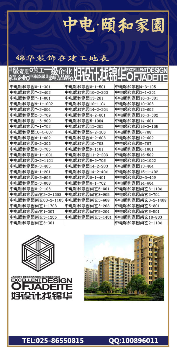 為了更好的讓中電頤和家園的業(yè)主了解錦華裝飾的整個工藝流程,錦華裝飾鼓北片區(qū)分公司整理了所有中電頤和家園的完工及在建工地,歡迎大家來參觀。