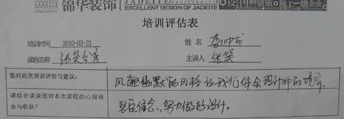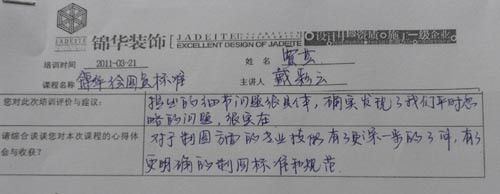 3月21日,公司在所有在編繪圖員和部分有潛力的實(shí)習(xí)生范圍中召開了一場(chǎng)繪圖員培訓(xùn)。本次培訓(xùn)由人力資源部牽頭,首先邀請(qǐng)了研發(fā)中心戴彩云老師對(duì)繪圖員的制圖規(guī)范和標(biāo)準(zhǔn)做了講解,對(duì)每季度繪圖員上繳作品情況也做了案例分析,其次是安排了主任設(shè)計(jì)師崔堯、高級(jí)設(shè)計(jì)師單清和堂杰工作室首席設(shè)計(jì)師張笑做了培訓(xùn)分享。最后由人力資源包總闡述了設(shè)計(jì)部?jī)?chǔ)備人才的“雛鷹計(jì)劃”的具體實(shí)施步驟及考核方案。優(yōu)秀的繪圖員作為錦華內(nèi)部的設(shè)計(jì)師儲(chǔ)備人員,將會(huì)在錦華這個(gè)優(yōu)秀的平臺(tái)上得以平穩(wěn)成長(zhǎng),錦華需要的是有志向、有方法、有心態(tài)的務(wù)實(shí)性人才,只要踏實(shí)認(rèn)真一步一個(gè)腳印的遵循公司的成長(zhǎng)體系,相信,“雛鷹”終將會(huì)成長(zhǎng)為一只在錦華天空中自由翱翔“雄鷹”!