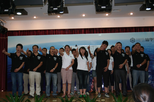 這次股東大會上,錦華的金牌培訓師——主材部曹總,給大家?guī)砹巳齻€拓展游戲:五張撲克大小PK、模仿不走樣、數(shù)數(shù)字;帶來現(xiàn)場歡樂的同時,讓所有的人都學會反思和總結;團隊的精神得到充分的體現(xiàn)。淮安分公司的市場經(jīng)理王志波說,“在南京大區(qū),感受到了溫暖,有了回家的感覺。”這就是集體精神的魅力所在。