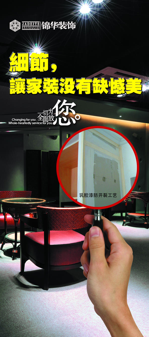 都說(shuō)裝修是遺憾的藝術(shù),那是因?yàn)榧?xì)節(jié)沒(méi)有做到位。作為行業(yè)領(lǐng)軍企業(yè)的錦華裝飾,在2012年初,推出了設(shè)計(jì)、施工、材料、服務(wù)四大保障體系,并從本周末開(kāi)始推出“細(xì)節(jié),讓家裝沒(méi)有缺憾美”為主題的放心家裝3.15系列活動(dòng);全面解析家裝中的細(xì)節(jié)問(wèn)題,讓家裝無(wú)后顧之憂。